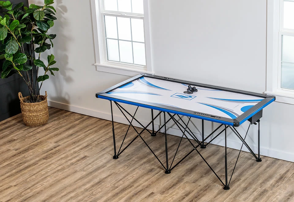 • 6-ft. portable air hockey table